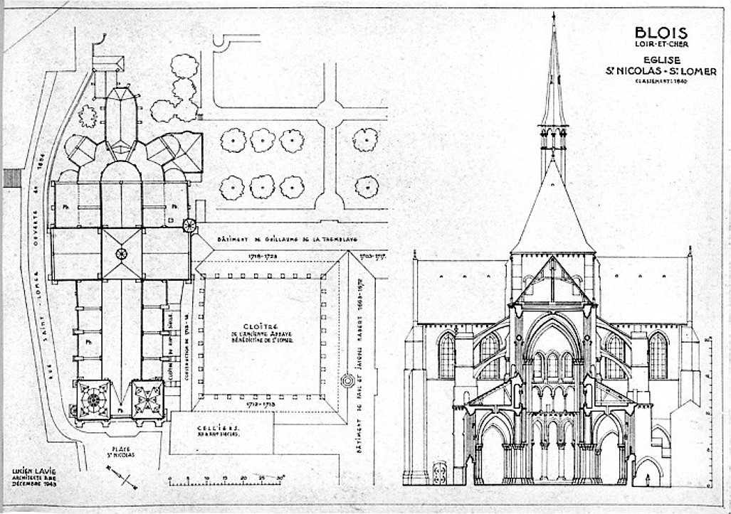 Saint-Nicolas de Blois,plan masse et des abords, coupe transversale, photo Lavie, Lucien, culture.gouv.fr,.jpg