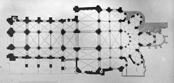 1138-1186 Chor, Querhaus und 1. Joch des Langhauses.